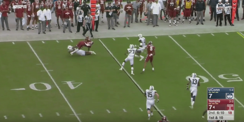 Over the first five games, pretty much every UConn defensive back was a step or two behind on short throws and looked consistently a step or two too slow on deep balls. When they did get in position to make a play, they weren’t strong enough or fundamental enough to make a tackle and limit the gain. If you watch and rewatch these plays, it’s hard to imagine what scheme could get UConn performing at a high level on defense.