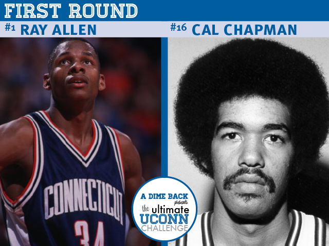 | #1 Ray Allen – (1993-1996) by Meghan Bard Ray Allen is the greatest three-point shooter in the history of the game of basketball. That’s right. I said it. His skill is unquestionable; his preparation is legendary. Despite only three years at UConn, he managed to score nearly 2,000 points. He is also the all-time leader in three-point shooting percentage. Allen is without a doubt the most successful former Husky to play in the NBA. In his final year in Storrs, he was named the 1996 Big East player of the year, and a First Team All-American. And who can forget that amazing off-balance game-winning shot against Allen Iverson and Georgetown in the 1996 Big East Championship. Career Points: 1922 Career Rebounds: 601 Career Assists: 105 Career Steals: 159 Career Blocks: 41 _____ 1st Team All-American 1995-1996 3rd Team All-American 1994-1995 |