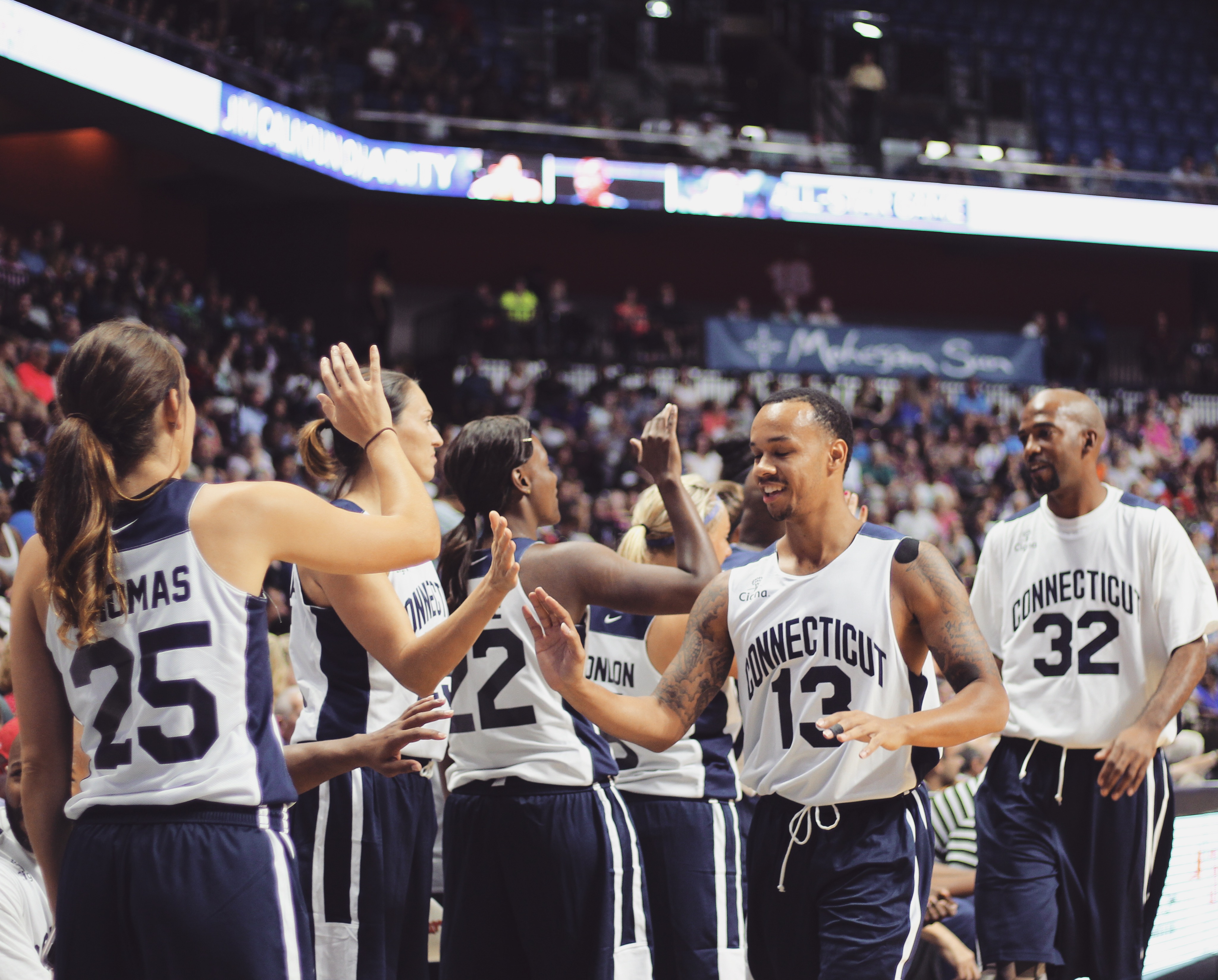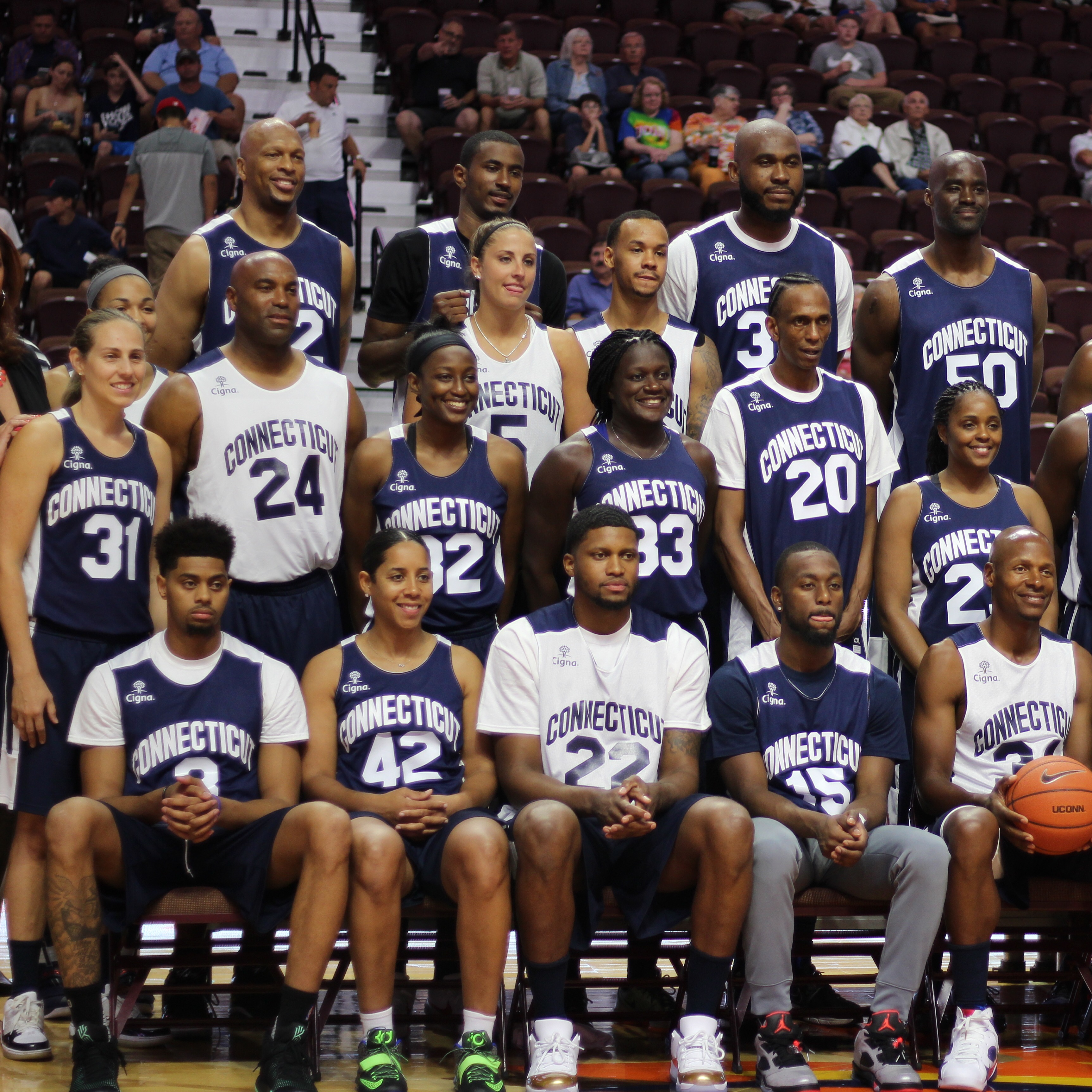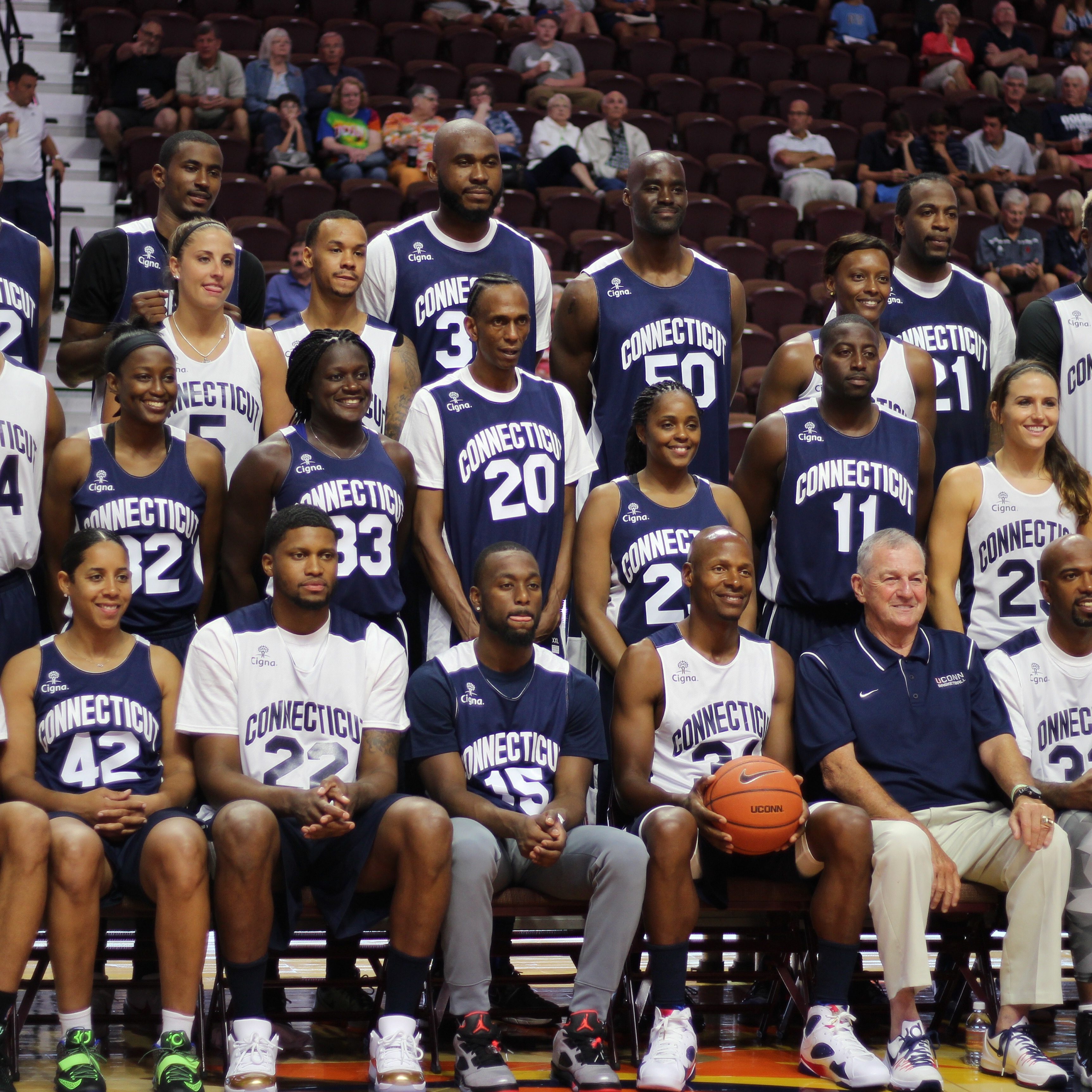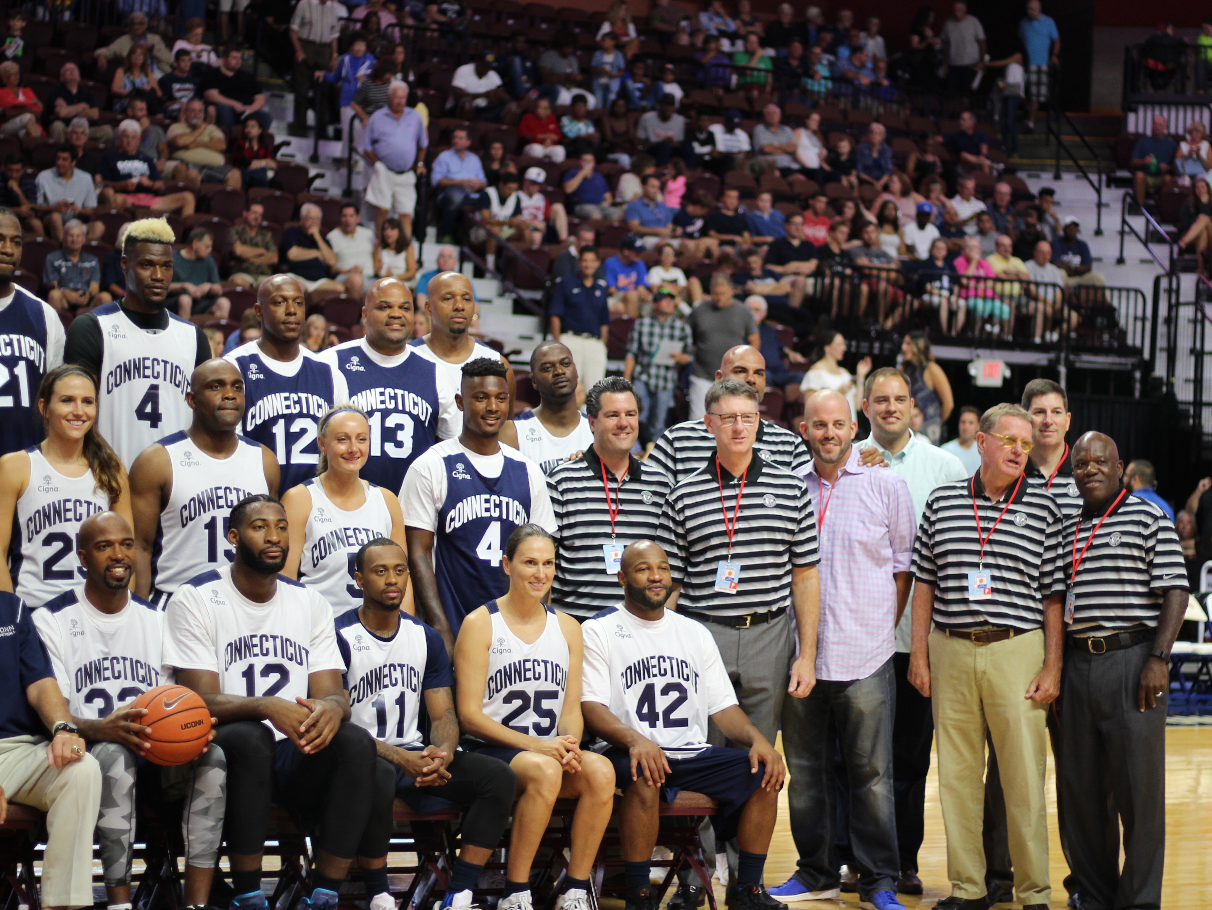 A bevy of former UConn greats returned to Connecticut on Friday night to take place in Jim Calhoun’s biannual charity all-star game at Mohegan Sun. Stars such as Ray Allen, Kemba Walker and Rip Hamilton were in attendance. And for the first time, players from UConn’s dominant women’s teams joined in on the fun, headlined by Svetlana Abrosimova and Nykesha Sales.