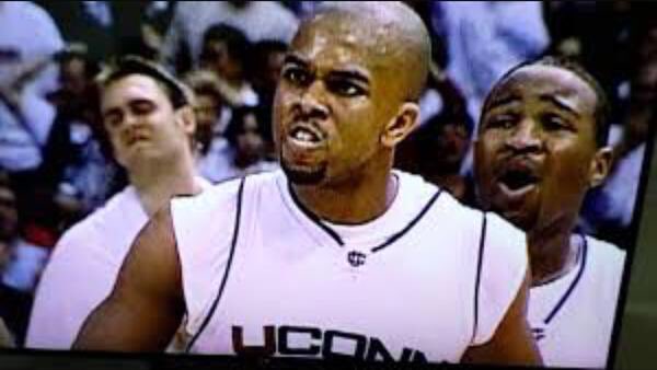 - The Travel: For me, the answer has to be The Travel. This was the biggest moment in the biggest game UConn had ever played. With a win over a seemingly invincible Duke team, UConn had a chance to etch their name along with the elite programs. Up just one point with 15 seconds to play, Trajan Langdon, Duke’s senior All-American guard, faces off against Ricky Moore, the best perimeter defender in the country. Langdon has had a monster game to that point, with 25 points on 7-of-15 shooting. Coach K could use a timeout to call one last play, but he decides to let it ride, and let Langdon and Moore figure it out like in backyard ball. Langdon starts to penetrate to his left, but Moore is just too quick. Langdon, desperate to get the shot off before he runs out of time, rolls to his right, but when he’s still running into Moore’s swarming defense, he drags his pivot foot. The whistle blows, travel, and #SlickRickFaceOnDemFolks.